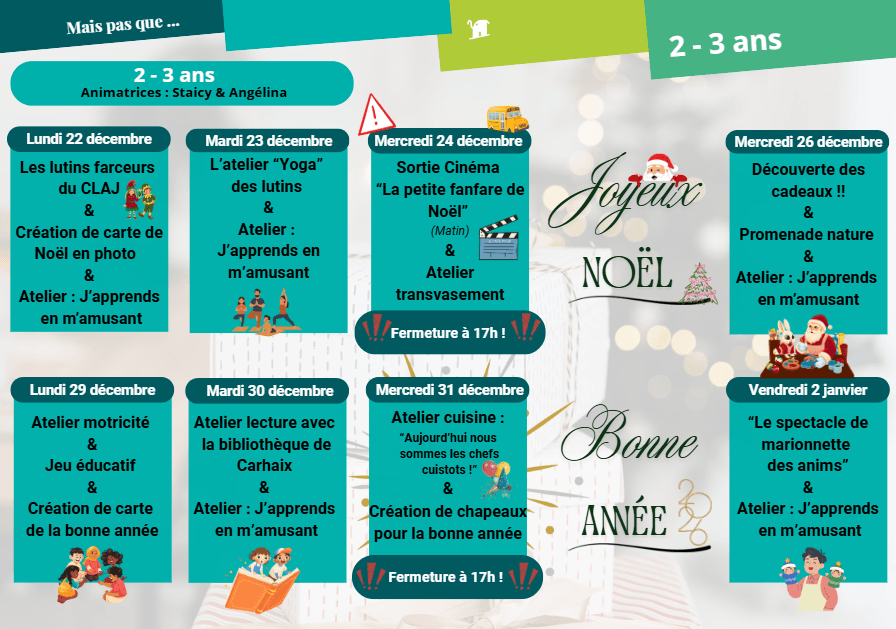 - Programme 2 - 3 ans, mercredis du 5 novembre au 17 décembre