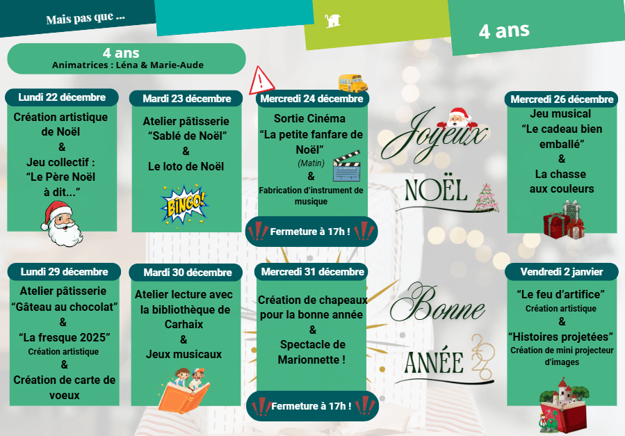 - Programme 4 ans, mercredis du 5 novembre au 17 décembre