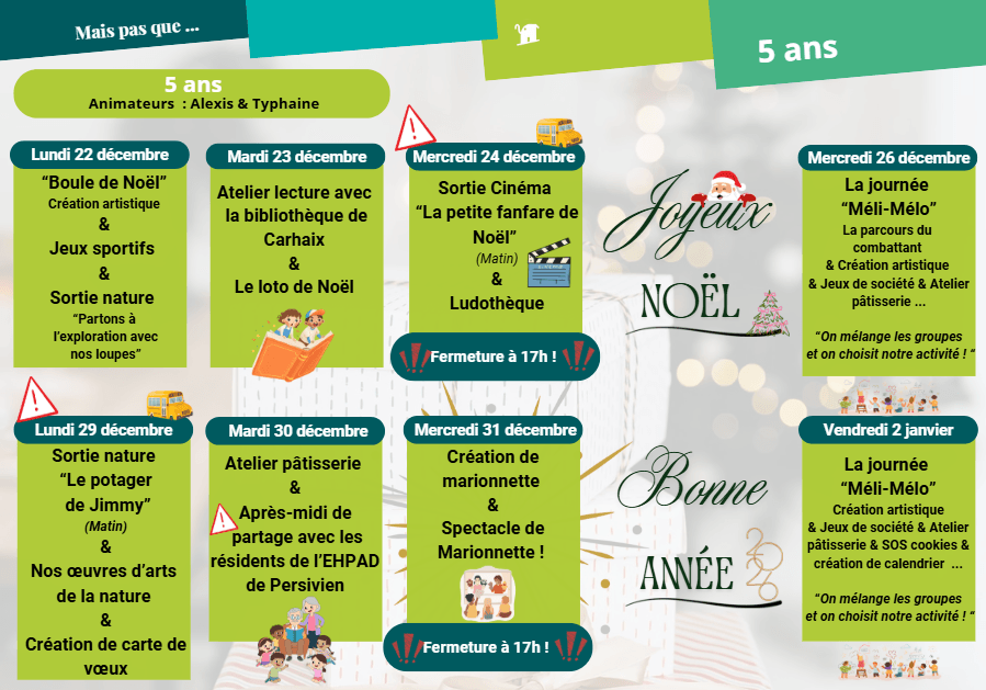 - Programme 5 ans, mercredis du 5 novembre au 17 décembre