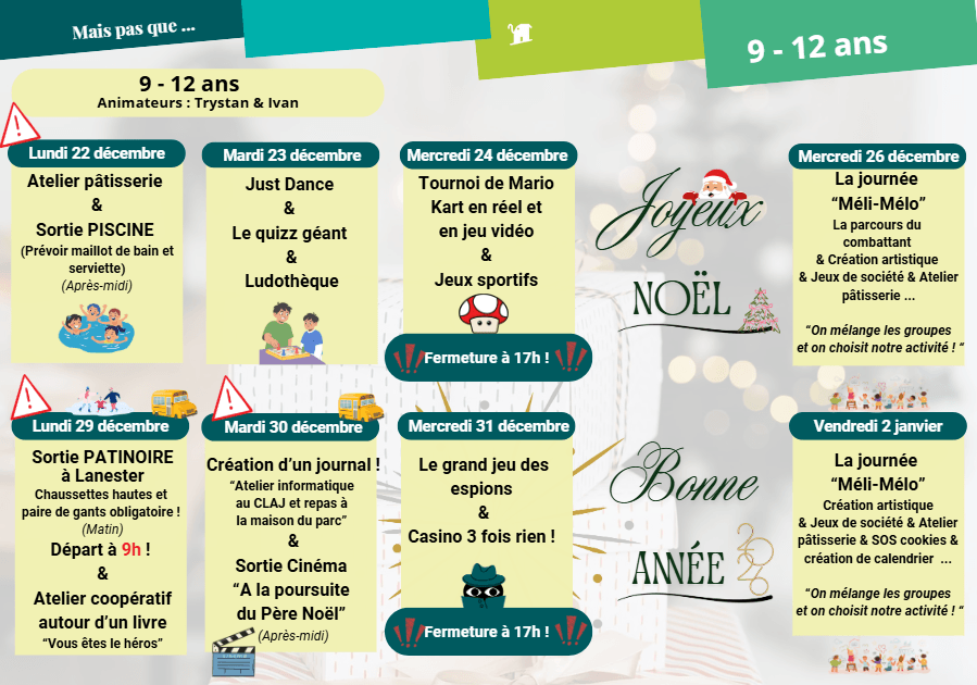 - Programme 9 - 12 ans, mercredis du 5 novembre au 17 décembre